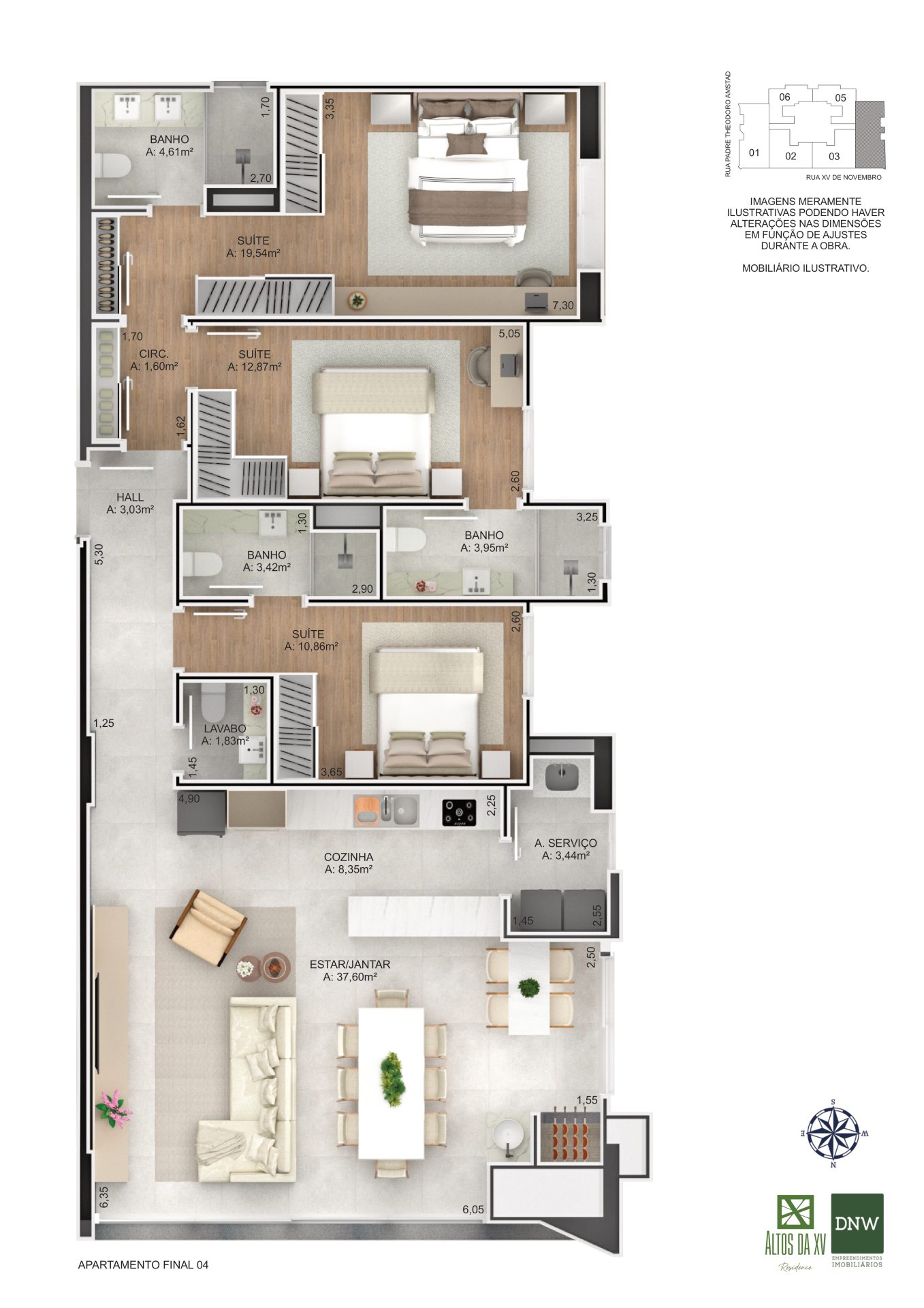 Apartamento de 3 suítes com 201,66m² - Altos da XV Residence - Bairro Florestal - Lajeado/RS